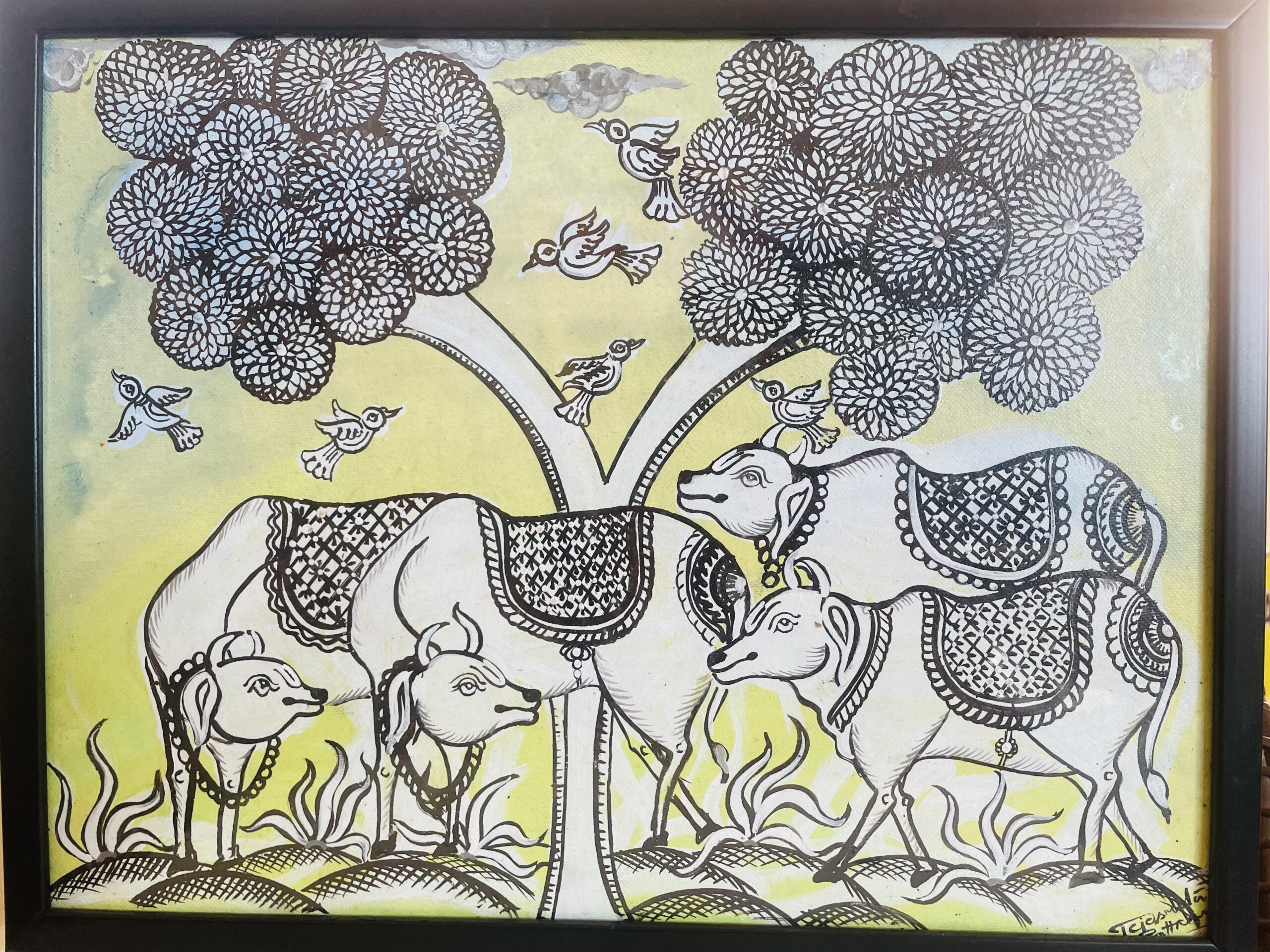 The cows and their family are symbolic of prosperity and enhancement. The cows are considered an auspicious creature. This picture carries a lot of weight in relation to growth and development. Nice pieces of gifts for house warming, balconies, and garden space.