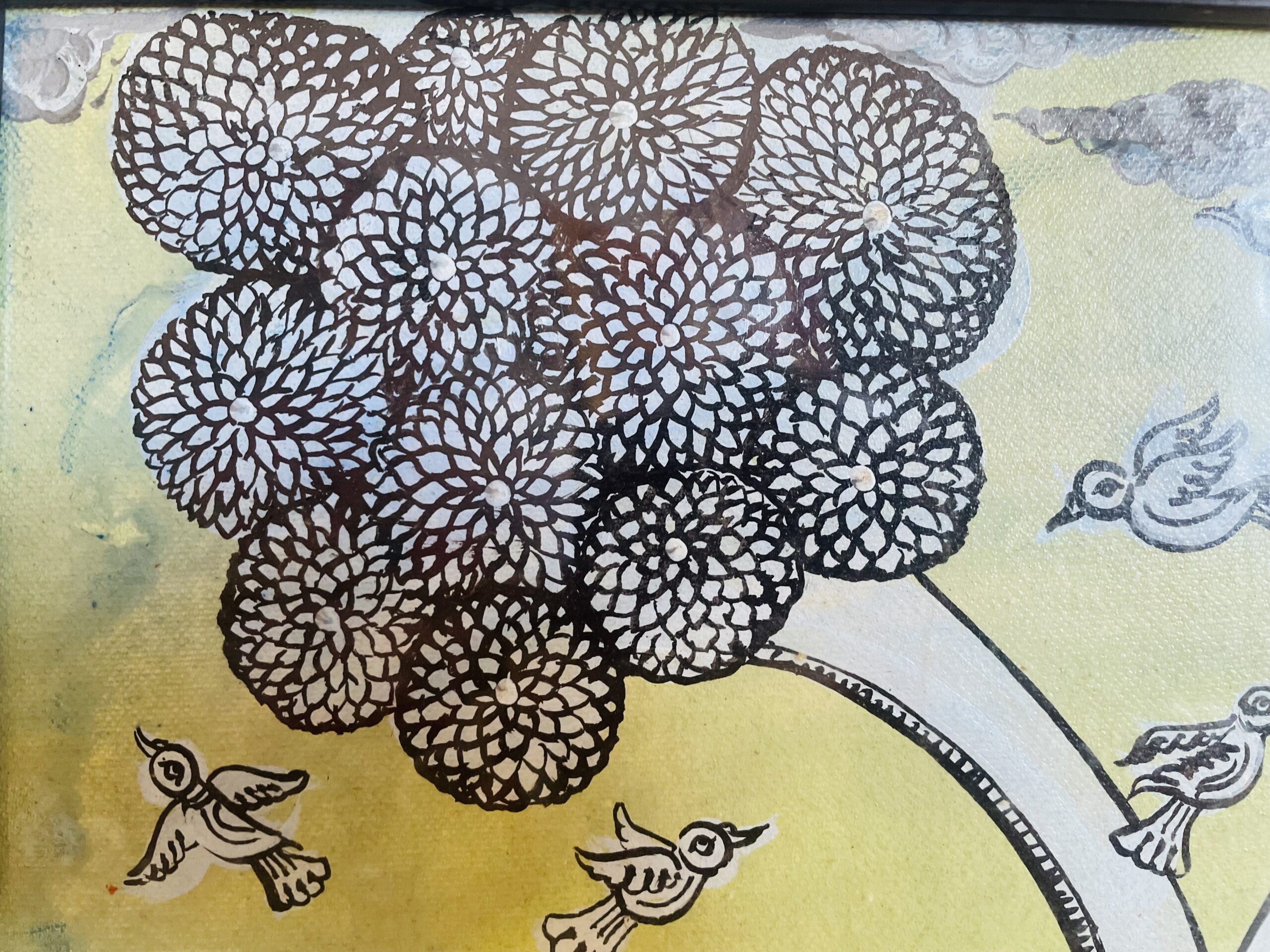 This painting is called ‘Leisure’ because when the lion became older, he seemed like a calm and relaxed one. It started looking like a beautiful flower, and the birds around it became fearless, instantly starting to revolve around it, even the lion enjoying their company.